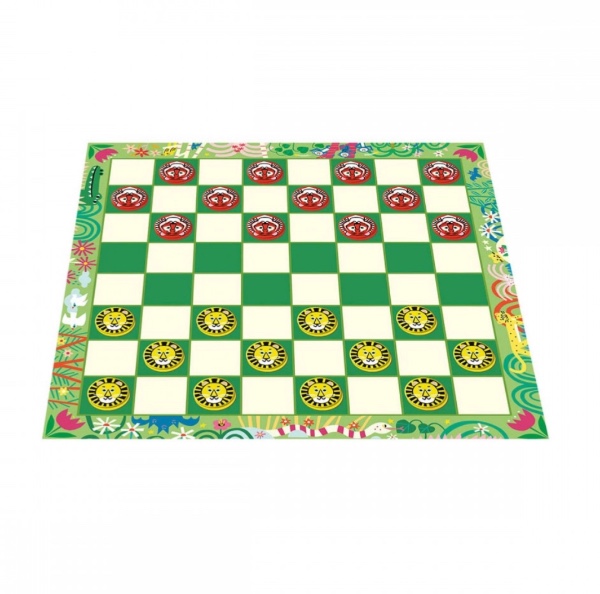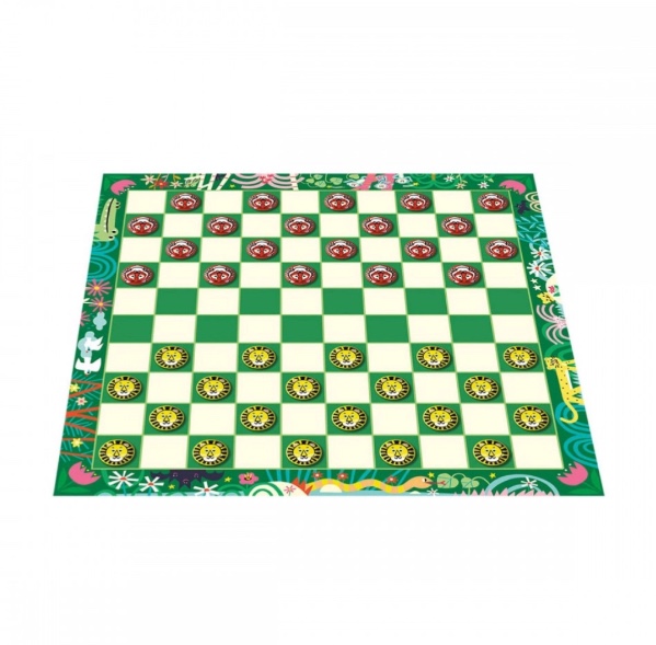 Discover the classic game of checkers through the beautiful illustrations of Jessica Das. Choose your animal, lion or tiger, and start playing! The game includes 44 wooden pieces, and the board is double-sided, offering two levels of difficulty: for beginners and younger children on one side, and for more experienced or older players on the other.