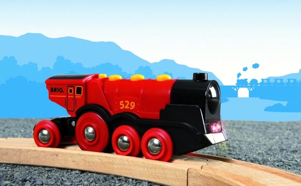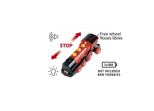 Keep little train drivers occupied for hours! The big battery-powered locomotive features two front lights and manual buttons for reverse motion, as well as the signature 'chug-chug' sounds.