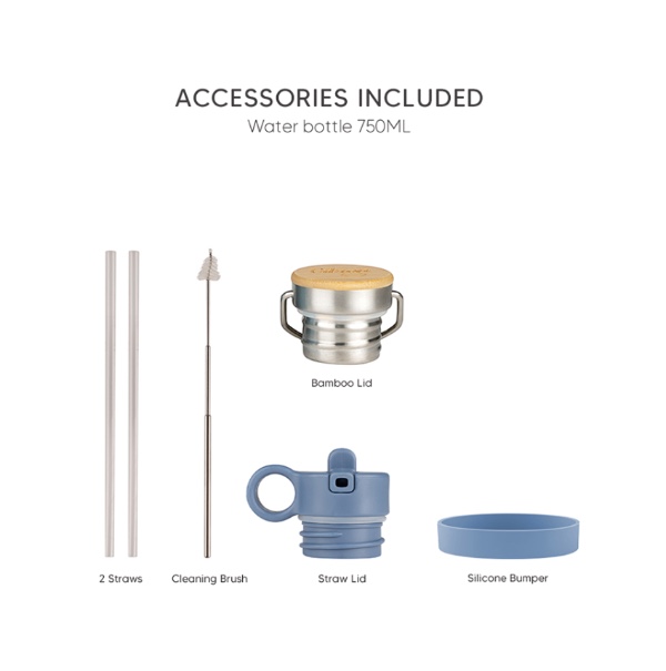 Includes 1 cleaning brush, 1 silicone bumper, 1 bamboo lid, 1 lid with integrated spout, and 1 extra straw.