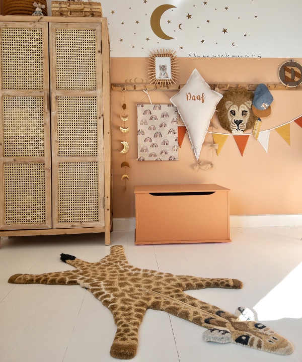 Bring some cheer to your room with this beautifully handcrafted Gimpy giraffe mat.
