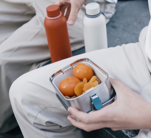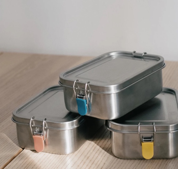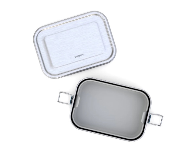 Combining two innovative materials, this food container is ideal for both hot and cold meals. It features a stainless steel base and a high-quality silicone food container that can go from the refrigerator and freezer to the oven. With colorful silicone clips for easy opening and closing.