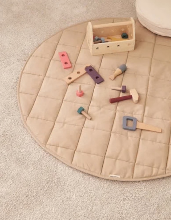 Quilted play mat that perfectly matches Indian tipis or can be used on its own.