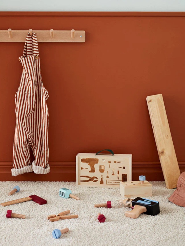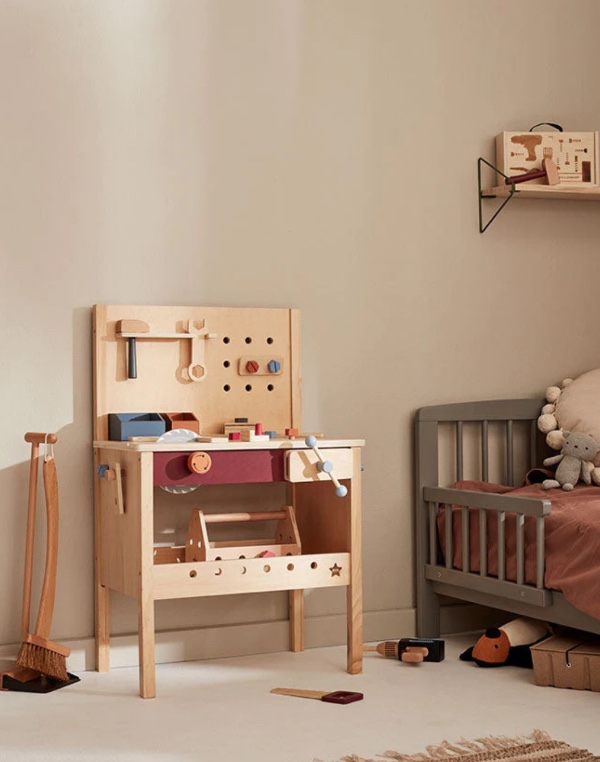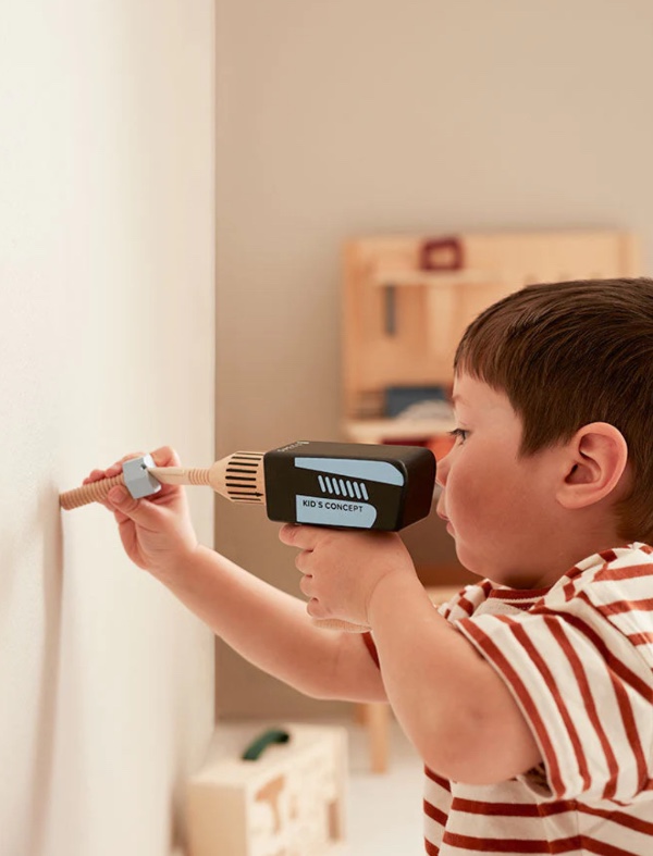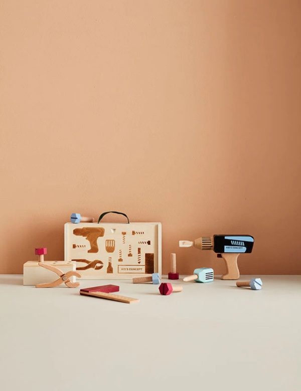 Wonderful tool case made of FSC certified wood for children who love to screw and build things. By changing the pieces, you can switch it from a drill to a screwdriver at any time. The case also contains screws that come in a wooden box with threads at the bottom where you can secure them. You can also use the hand screwdriver or the pliers for tougher building tasks.