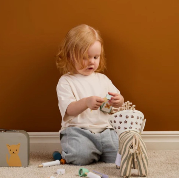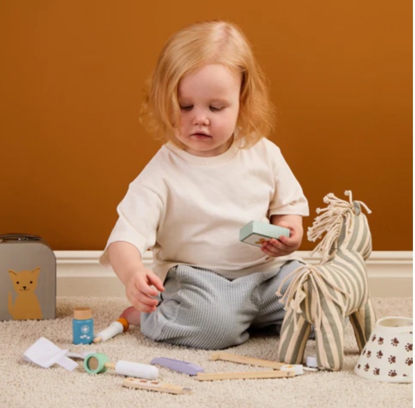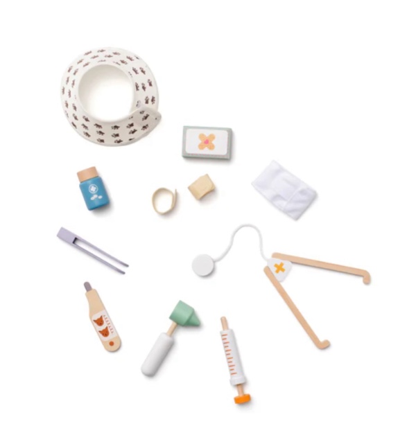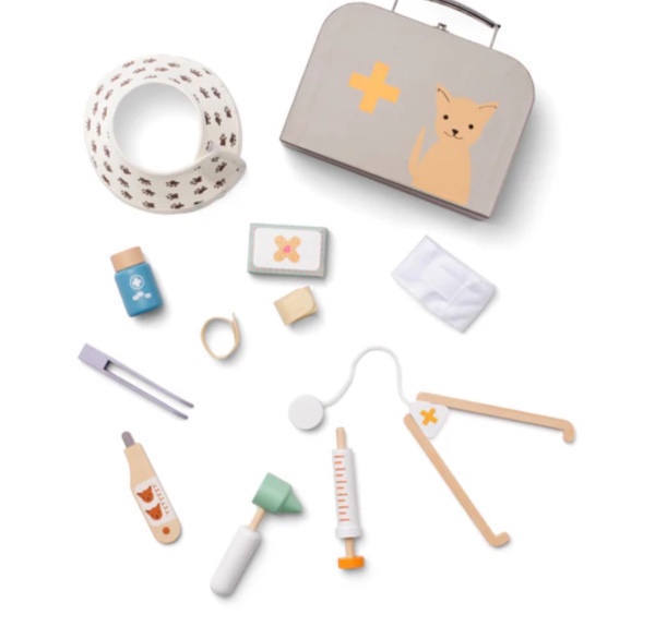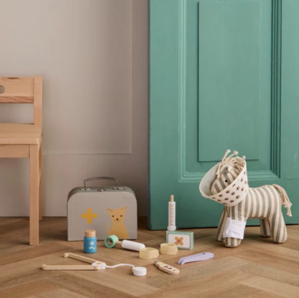 This wooden vet play set is perfect for children who love taking care of their stuffed animals!