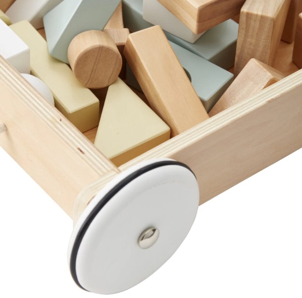 The Wagon with the Wooden Blocks is two classic toys in one. Your little one will love pulling their favorite toys in the wooden wagon and will enjoy pulling the wagon with the attached string around the room. And to play and build with the wooden blocks.