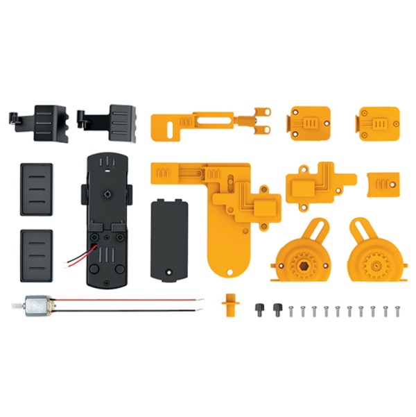 CONTENTS: Part A: Arm Frame x1, Part B: Base x1, Part C: Claw Arm x1, Part D: Left Claw Section x1, Part E: Right Claw Section x1, Part F: Lower Claw Cover x1, Part G: Upper Claw Cover x1, Part H: Motor x1, Part I: Plate x2, Part J: Right Shoulder Section x1, Part K: Left Shoulder Section x1, Part L: Motor Cover x1, Part M: Battery Cover x1, Part N: Handle x1, Part O: Claw Cover x1, Part P: Terminal Cap x2, Part Q: Screws x10.