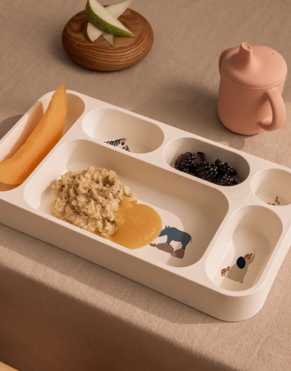 Keeping in mind curious little food enthusiasts, the MOSU divided plate features a wide design with six separate compartments, meaning you can offer your little one different types of food and portions to explore by themselves. A new essential for mealtimes that stacks, is dishwasher safe, and supports your child's food exploration.