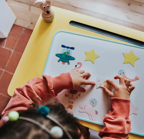 Thanks to their thinness and flexibility, the magnets overlap, allowing the child a free and independent exploration of play. This will multiply experiences, ideas, and stories by themselves, with the only limit being their imagination.