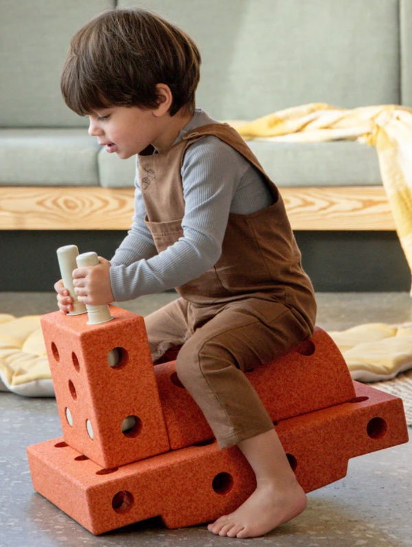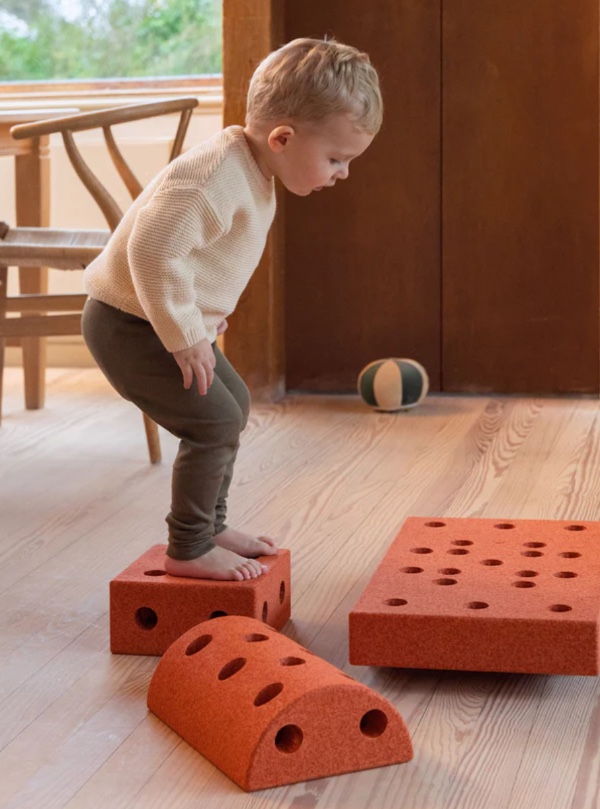 They will help the child crawl, walk, climb, roll, jump from one to another, form their first wheeled vehicle, their first rocking animal, or their first balance board, from 6 months to six years; the combinations are endless! The best coach for developing touch, sight, balance, strength, flexibility, and above all, creativity and imagination!