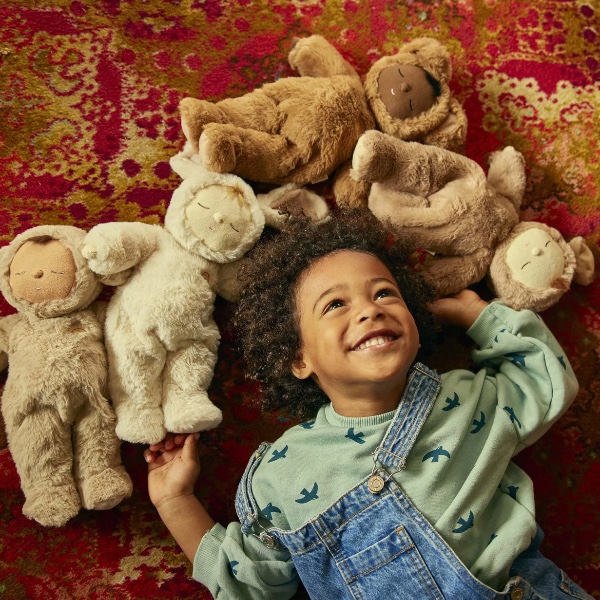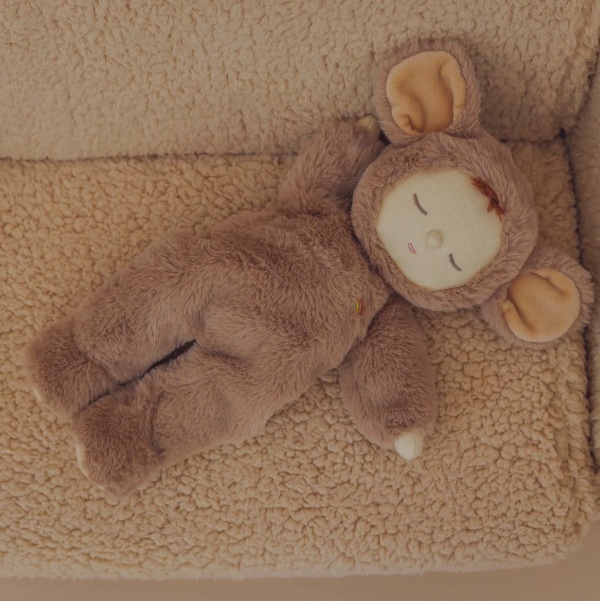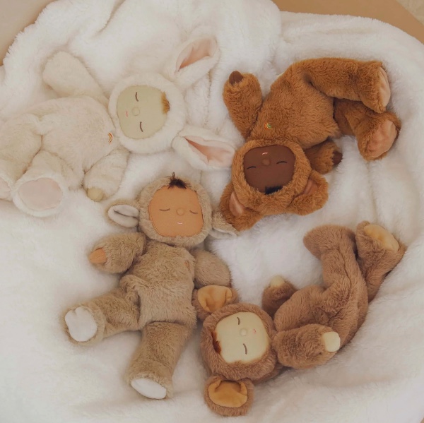 The Cozy Dolls Dinkum can pose in many sleeping positions with their head, arms, and legs joined to their body with an internal cotton tape.
