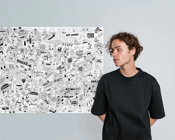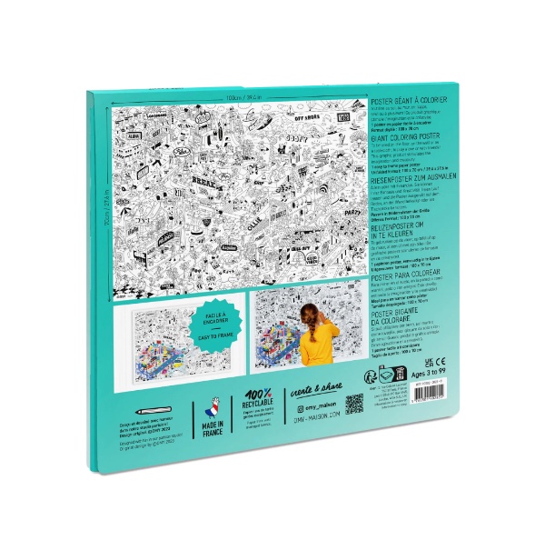 Relax while coloring this huge poster and enjoy nice moments with your child! Choose the colors that best match your walls and your space. Ideal for many happy and creative hours among small and large children. OMY creates and designs joyful and beautiful patterns for the whole family, turning decoration into playtime and a moment where friends and family can create and have fun together. All OMY products are lovingly designed in Paris, with special care in the selection of materials and the authenticity of each new product.