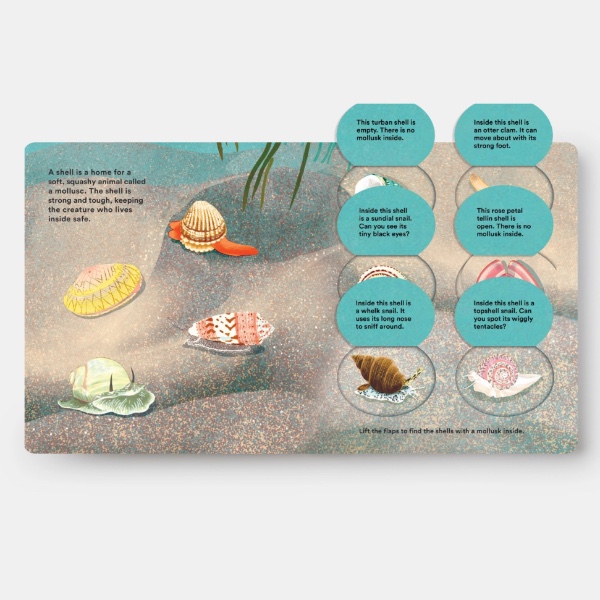 A richly illustrated, informative, and interactive introduction to shells for children ages 2-4, with over 40 flaps to lift and discover.