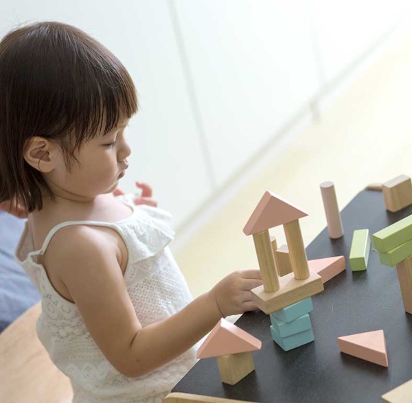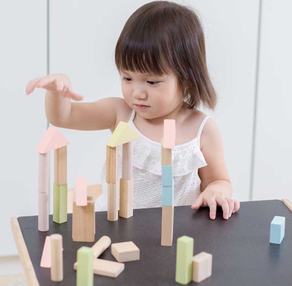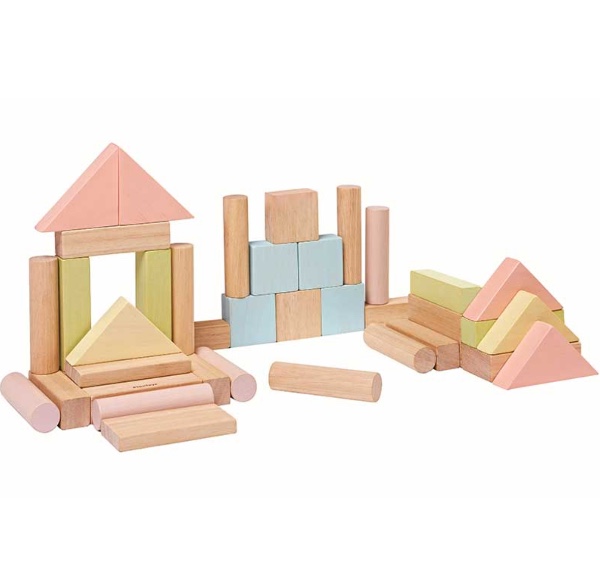 This set develops children's creativity and imagination and includes 40 blocks in 6 different shapes (18 in pastel colors and 22 in natural wood). This toy is based on the Montessori method.