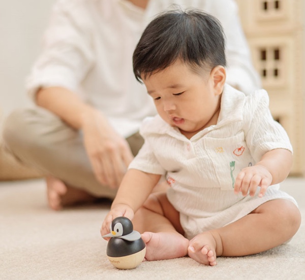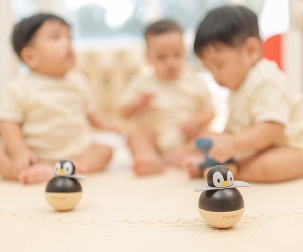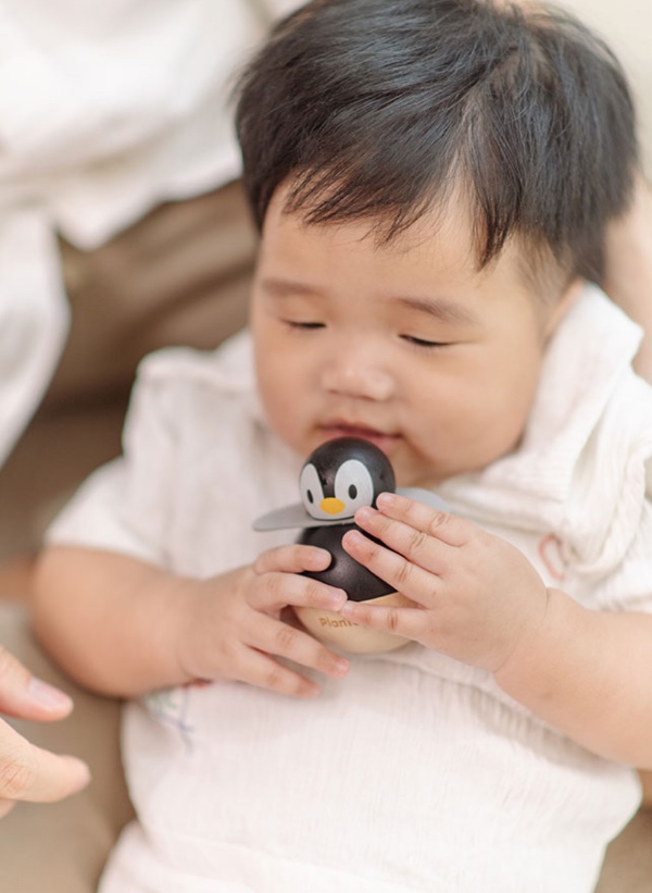The Penguin engages babies from birth, stimulating visual tracking, the desire to reach for it and move it.