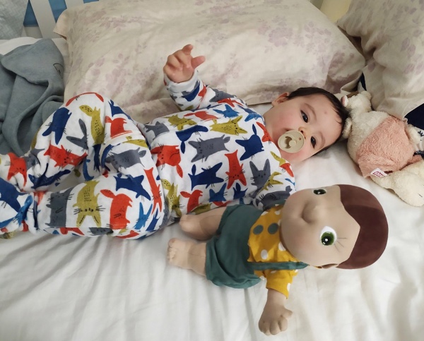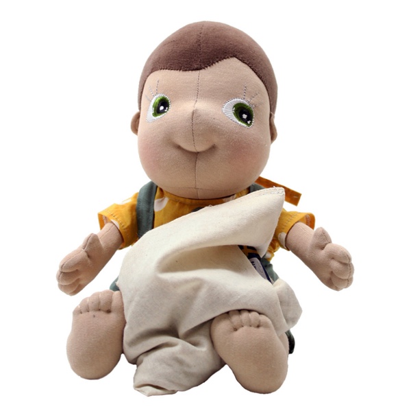 Each Rubens Barn doll is handcrafted. Their faces are sculpted with soft fabric to give them an emotional and expressive appearance. The eyes are very important. They are embroidered, showcasing their liveliness combined with their warm smile.