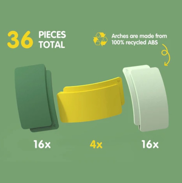 Imagine, create, and play without limits with the Arches, the innovative open-ended game that unleashes children's imagination! Each curve becomes a tool for creation, sometimes a tunnel, sometimes a bridge, a road, or a magical portal to a world that changes with every play.