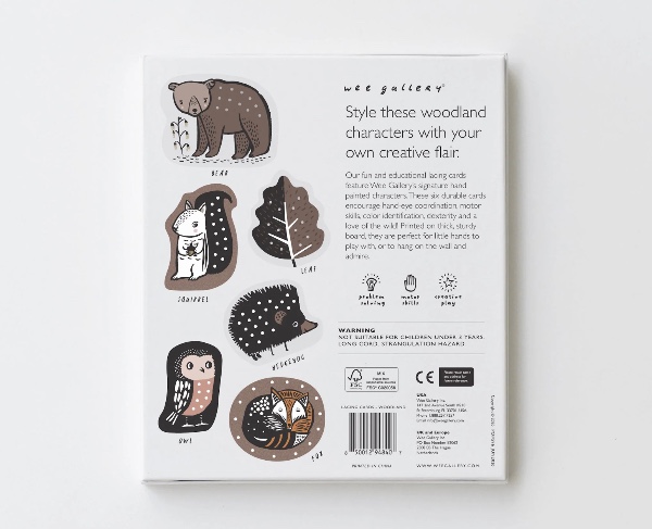 Dress these adorable animals in your own creative style! Our fun and educational cards feature the names of the animals hand-painted - hedgehog, squirrel, bear, owl, fox, and acorn leaf. This activity encourages hand-eye coordination and can promote the development of motor skills, color recognition, dexterity, and a 'wild' sense of fashion!