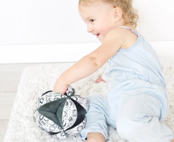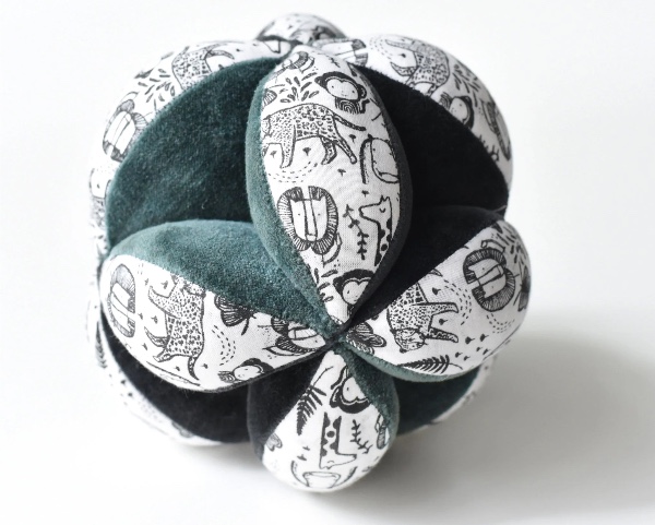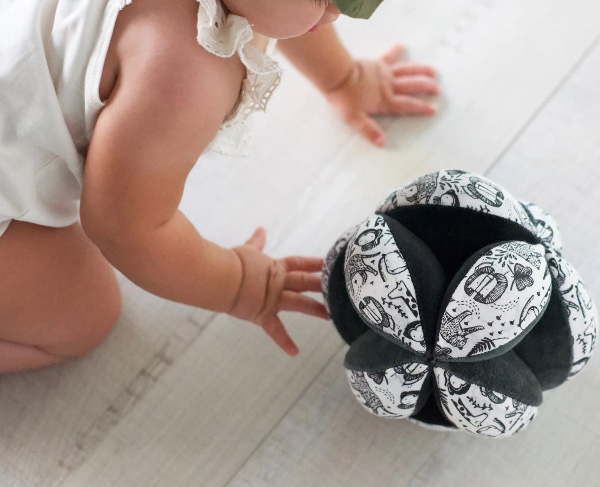 Also known as the 'Amish puzzle ball', it became popular among Montessori educators. Our balls do not disassemble, so they are not truly puzzles, but your baby will explore them as if they were. The sensory clutch balls can be used in many ways with babies from 3 months - attach a strap and hang it above your baby from 3 months to encourage kicking. By around 5 months, your baby will start moving the ball with their hands and trying to grab it. The sections make it easier for a baby to grasp than a regular ball. And when it falls, it won't roll away. It's the perfect first ball for babies and is a popular favorite baby toy.