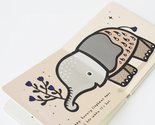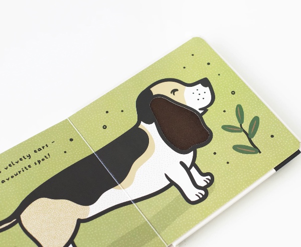 The Touch and Feel Ears texture board book is printed on FSC certified board and features four textures plus a bonus texture on the cover.