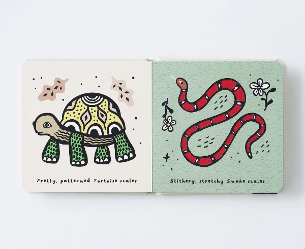 Meet seven adorable animals with super special scales, from a little fish to a slippery snake. Little ones will love feeling the textured pages designed to help develop sensory and motor skills.