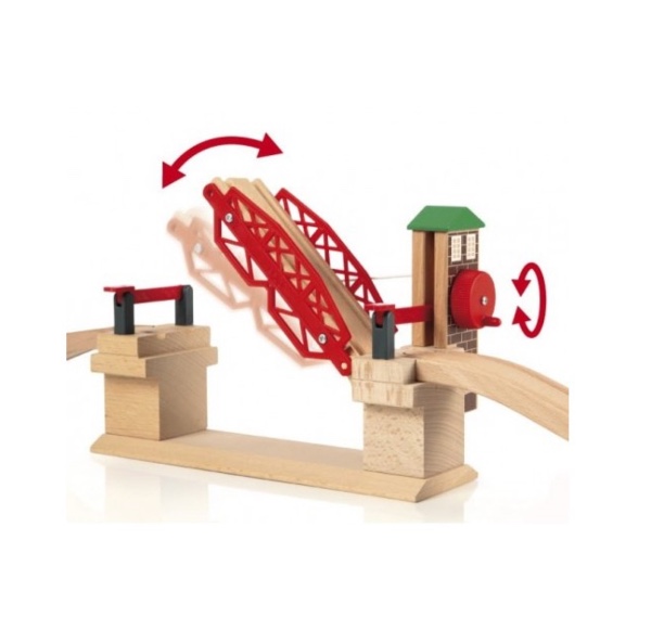 Είναι ώρα να περάσει το πλοίο! Ξεκίνα να περιστρέφεις τη λαβή για να σηκώσεις τη γέφυρα και χαμήλωσε χειροκίνητα τις μπάρες εισόδου. Περιλαμβάνει δύο ράγες με κλίση για εύκολη σύνδεση με κάθε σιδηροδρομικό σετ.