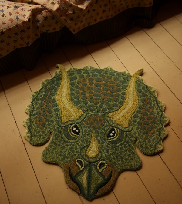Φέρτε λίγο κέφι στο δωμάτιό σας με αυτό το όμορφο χειροποίητο μεγάλο χαλί Triceratop δεινόσαυρος.