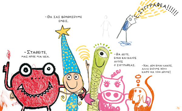 Το βιβλίο αυτό δεν έχει ακόμη γραφτεί κανονικά! Έχει ήρωες (που είναι ακόμη σκίτσα) κι έναν συγγραφέα (Σσσ! Δουλεύει πυρετωδώς). Αλλά μιας και το κρατάτε στα χέρια σας και θέλετε ένα παραμύθι, θα σας κάνουν τη χάρη (τουλάχιστον, θα προσπαθήσουν!...).