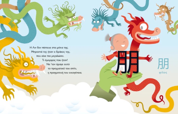 Η μικρή Λιν παίρνει ένα δώρο αλλιώτικο από τ' άλλα: έναν μικρούλη δράκο. Και τότε αρχίζουν οι περιπέτειες... Μαζί τους, παιδιά και γονείς μαθαίνουν τα πρώτα τους κινέζικα ιδεογράμματα.