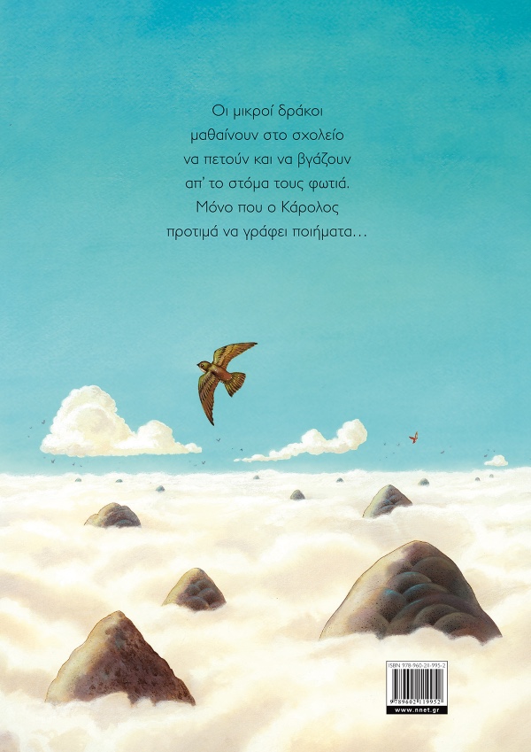 Οι μικροί δράκοι μαθαίνουν στο σχολείο να πετούν και να βγάζουν απ' το στόμα τους φωτιά. Μόνο που ο Κάρολος προτιμά να γράφει ποιήματα...