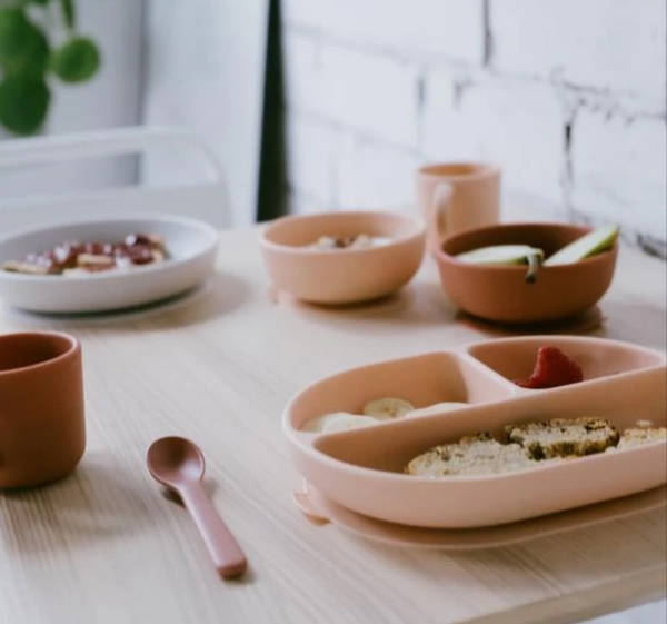 Πιάτο με 3 χωρίσματα. Από σιλικόνη και με βεντούζα στη βάση του για σταθερή τοποθέτηση