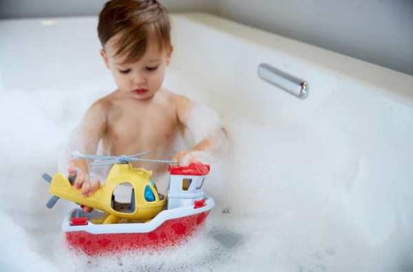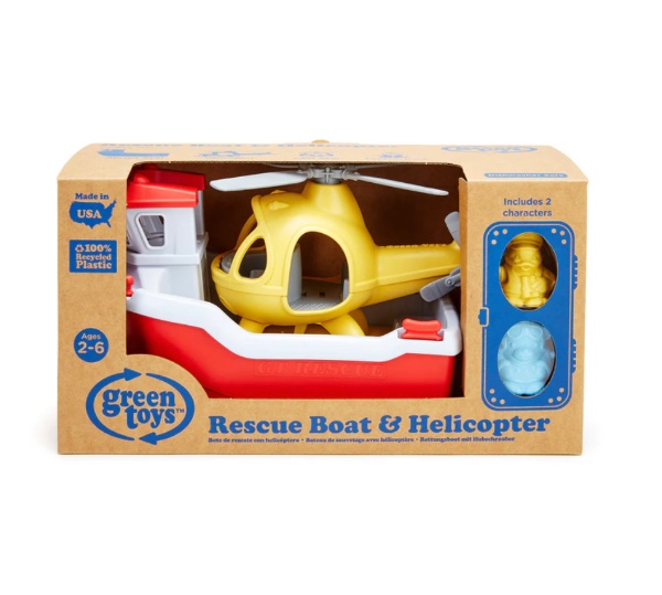 Καμία υπηρεσία διάσωσης στο νερό δεν είναι απρόσιτη όταν το Green Toys™ Rescue Boat & Helicopter λάβει την κλήση! Αυτό το παιχνίδι δύο σε ένα είναι το ίδιο διασκεδαστικό στη στεριά όσο και στο νερό, με ένα έντονο κίτρινο, πλήρους μεγέθους ελικόπτερο φωλιασμένο στο πίσω κατάστρωμα του ερυθρόλευκου σκάφους διάσωσης. Το σετ περιλαμβάνει επίσης δύο χαρακτήρες – έναν Captain Duck και τον Pilot Bear – έτοιμοι να πάνε όπου τους πάει η φαντασία του παιδιού σας. Ειδικά σχεδιασμένο για να επιπλέει στο νερό και να ανοίγει για το πλυντήριο πιάτων, αυτό το πλοίο είναι μια τέλεια προσθήκη σε κάθε στόλο μπανιέρας.