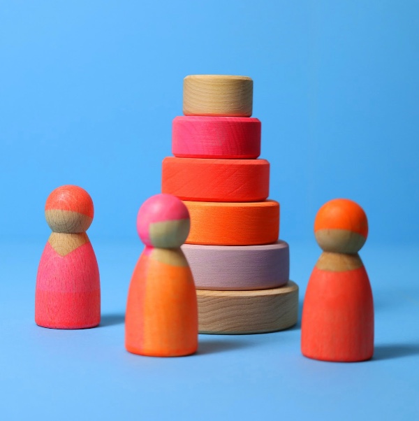 Το χρώμα και ο κόκκος των διαφορετικών ξύλων διασφαλίζουν ότι δεν υπάρχουν δύο φιγούρες όμοιες όταν κοιτάζετε πιο προσεκτικά. Ο σχεδιασμός των φίλων μας είναι σκόπιμα απλός και περιορισμένος, έτσι ώστε η φαντασία των παιδιών να μην περιορίζεται από πάρα πολλές λεπτομέρειες και να μπορεί να αναπτυχθεί όπως θέλουν.