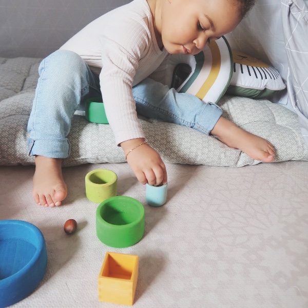 Το Set of Bowls είναι ένα ευέλικτο παιχνίδι για τα παιδιά: μπορούν να στοιβάζουν και να ταξινομούν τα μπολ ανά μέγεθος και χρώμα, να τα χτίζουν με αυτά, να τα χρησιμοποιούν ως κατσαρόλα ή πιάτο, να συλλέγουν θησαυρούς κ.λπ.