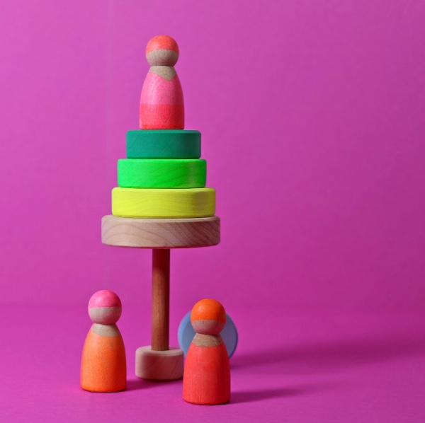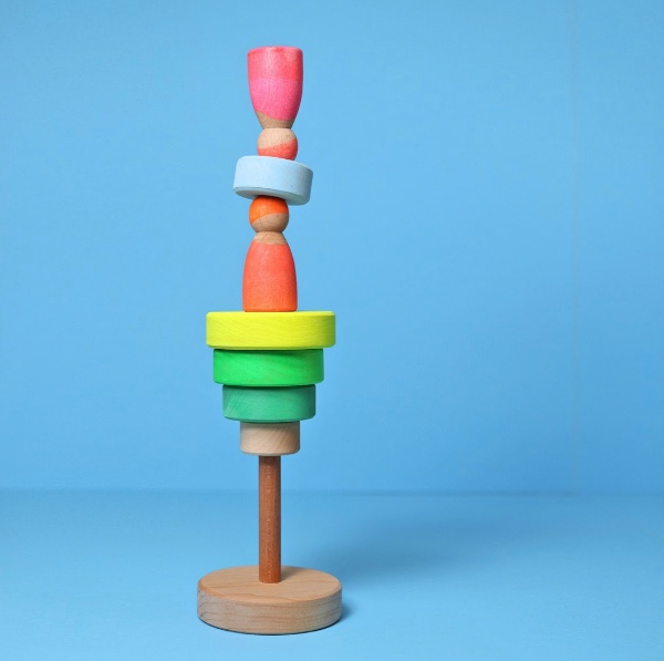 Ο μικρός πύργος στοίβαξης σας προσκαλεί να ταξινομήσετε κατά χρώμα και μέγεθος, να στοιβάξετε και να ξεκινήσετε να χτίζετε δημιουργικά. Το παιχνίδι με αυτό εκπαιδεύει τις κινητικές δεξιότητες των μικρών και είναι διασκεδαστικό χάρη στα έντονα χρώματα σε συνδυασμό με τους φυσικούς τόνους του ξύλου.