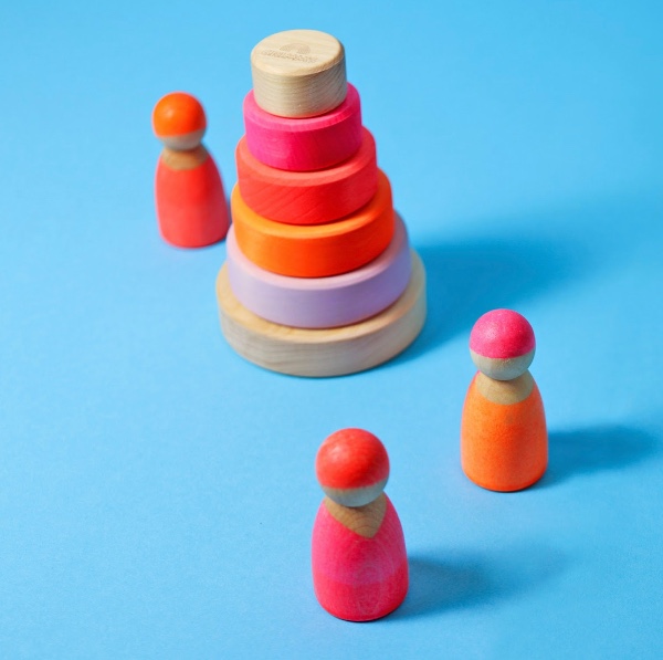 Ο μικρός πύργος στοίβαξης σας προσκαλεί να ταξινομήσετε κατά χρώμα και μέγεθος, να στοιβάξετε και να ξεκινήσετε να χτίζετε δημιουργικά. Το παιχνίδι με αυτό εκπαιδεύει τις κινητικές δεξιότητες των μικρών και είναι διασκεδαστικό χάρη στα έντονα χρώματα σε συνδυασμό με τους φυσικούς τόνους του ξύλου.