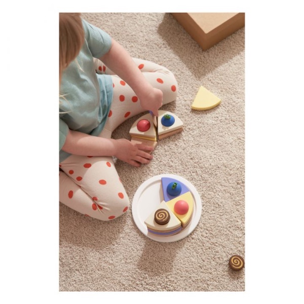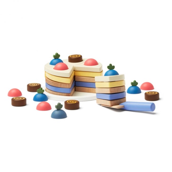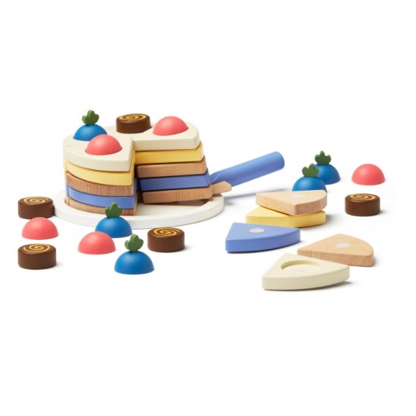 Περιέχει: Μια βάση για κέικ, είκοσι πέντε διαφορετικές στρώσεις κέικ, πέντε βατόμουρα, πέντε κομμάτια σοκολάτας, πέντε ζελέ, μια σπάτουλα για κέικ και ένα κουτί για κέικ.