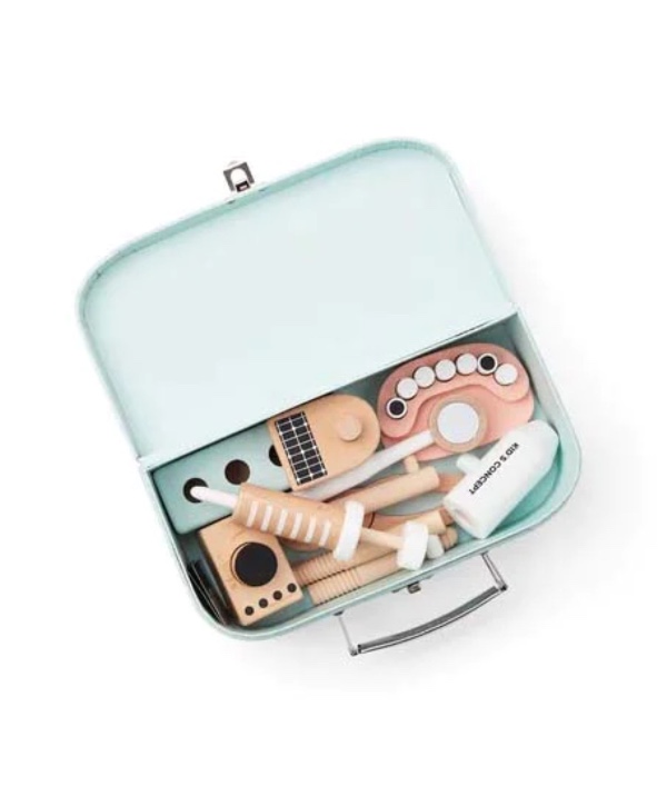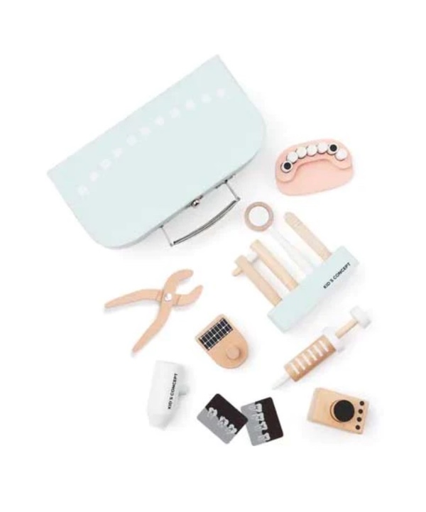 Ένα πλήρες σετ οδοντιάτρου με πολλά εργαλεία, δοντάκια, ακτινογραφίες και άλλα τα οποία τοποθετούνται και αποθηκεύονται πανεύκολα στο βαλιτσάκι που είναι κατασκευασμένο από σκληρό χαρτόνι. Πανεύκολο στη μεταφορά όπου κι αν πάτε!