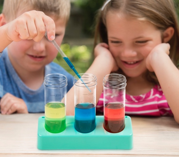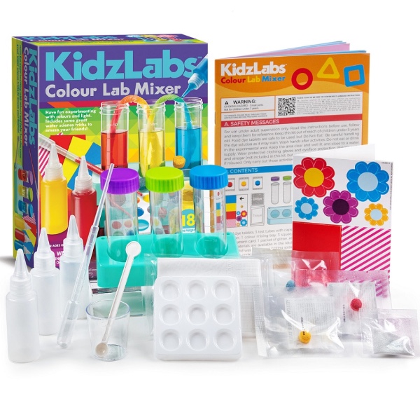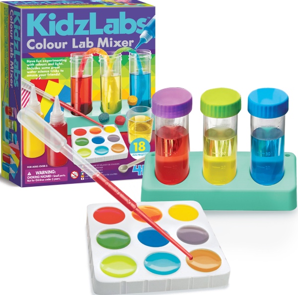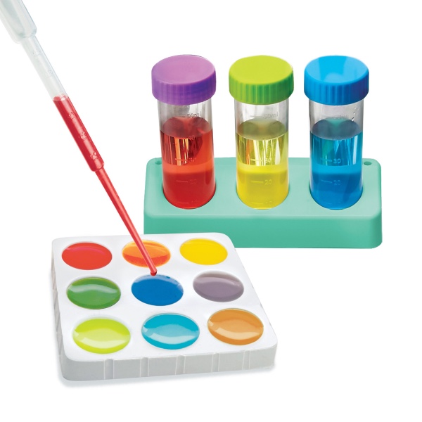 Διασκέδασε κάνοντας πειράματα με τα χρώματα και το φως. Στις οδηγίες αναγράφονται μικρά μυστικά και κόλπα για να καταπλήξεις τους φίλους σου χρησιμοποιώντας το νερό και την επιστήμη! Κάνε και τα 18 πειράματα και διάβασε τα ψυχαγωγικά στοιχεία για να μάθεις συναρπαστικές πληροφορίες για τα χρώματα, τα φυτά, το νερό και πολλά άλλα. ΠΕΡΙΕΧΟΜΕΝΑ: 3 δισκία βαφής τροφίμων (ταμπλέτες), 3 δοκιμαστικοί σωλήνες με καπάκια, 1 βάση για δοκιμαστικούς σωλήνες, 1 σταγονόμετρο, 1 κουτάλι, 1 δοχείο, 1 δίσκος ανάμειξης χρωμάτων, 3 εύκαμπτα πλαστικά μπουκάλια (φιάλες συμπιέσεως), 1 σακουλάκι χαρτομάντιλα, 1 κάρτα με χρωματιστά μοτίβα, 1 σακουλάκι γκλίτερ.