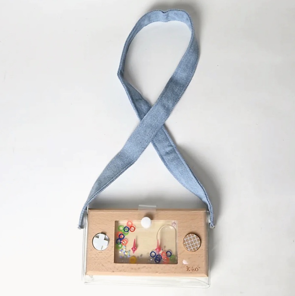 1 παιχνίδι Wakka με ξύλινο νερό με κρίκους, 1 διάφανη θήκη μεταφοράς με λουράκι.