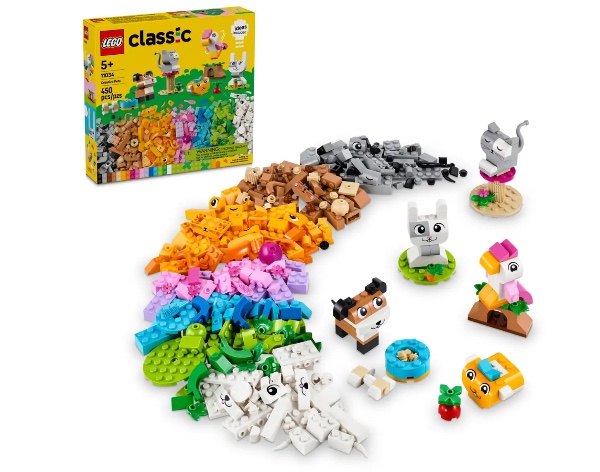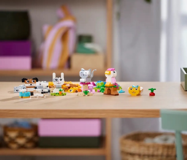 Με 450 τουβλάκια κατασκευής LEGO, συμπεριλαμβανομένων ειδικών κομματιών με μάτια και στόματα, και απλές οδηγίες βήμα προς βήμα, τα παιδιά μπορούν να κατασκευάσουν έναν σκύλο με ένα μπολ και κόκαλο, μια γάτα σε μια βάση, ένα χάμστερ με ένα μήλο, ένα κουνέλι με ένα καρότο και ένα πουλί σε μια κούρνια. Στη συνέχεια, χρησιμοποιώντας προτάσεις που περιλαμβάνονται για εναλλακτικά χρώματα, σχήματα και λειτουργίες, τα παιδιά μπορούν να ξαναχτίσουν τα κατοικίδιά τους με έναν διασκεδαστικό, νέο τρόπο. Καθώς αναπτύσσονται οι δημιουργικές τους κατασκευαστικές δεξιότητες, τα παιδιά μπορούν να δοκιμάσουν τις δικές τους ιδέες. Ένας οδηγός με 10 ιδέες περιλαμβάνεται για να ξεκινήσει η διασκέδαση της ελεύθερης κατασκευής.