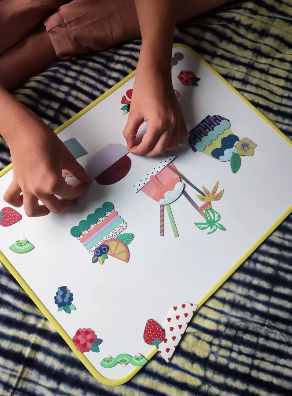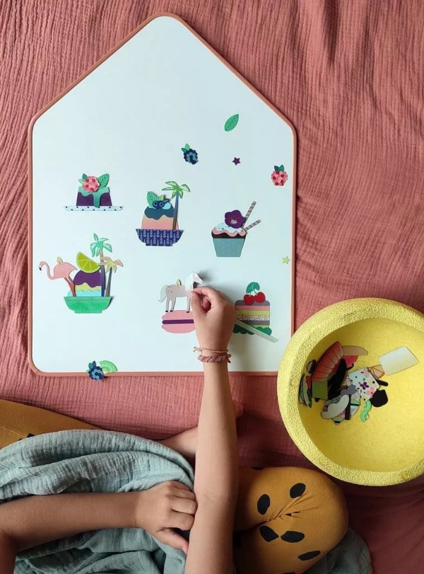 Χάρη στη λεπτότητα και την ευελιξία τους, οι μαγνήτες υπερτίθενται, αλληλοκαλύπτονται και έτσι επιτρέπουν στο παιδί μια ελεύθερη και αυτόνομη εξερεύνηση του παιχνιδιού. Θα πολλαπλασιάσει έτσι τις εμπειρίες, τις ιδέες, τις ιστορίες μόνος του, με μοναδικό όριο τη φαντασία του.