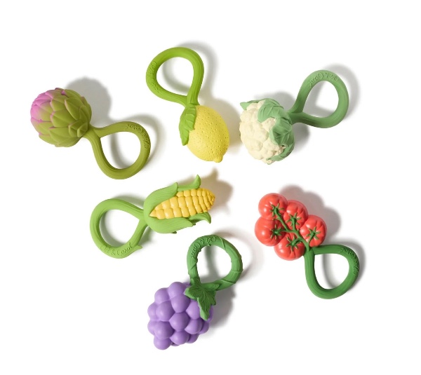 Τα παιδιά ξετρελαίνονται από την ήχο της κουδουνίστρας και την υφή του φυσικού καουτσούκ, ανακουφίζονται από τα πονάκια οδοντοφυΐας, ενώ παράλληλα εξοικειώνονται και μαθαίνουν να αγαπούν τα φρούτα και τα λαχανικά από τη βρεφική ηλικία!