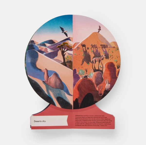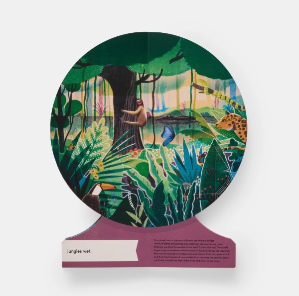 Μια φωναχτά εισαγωγή στη γεωγραφία για μικρά παιδιά που, όταν ανοίγει και διπλώνει προς τα πίσω, δημιουργεί μια ανεξάρτητη υδρόγειο