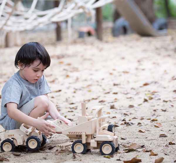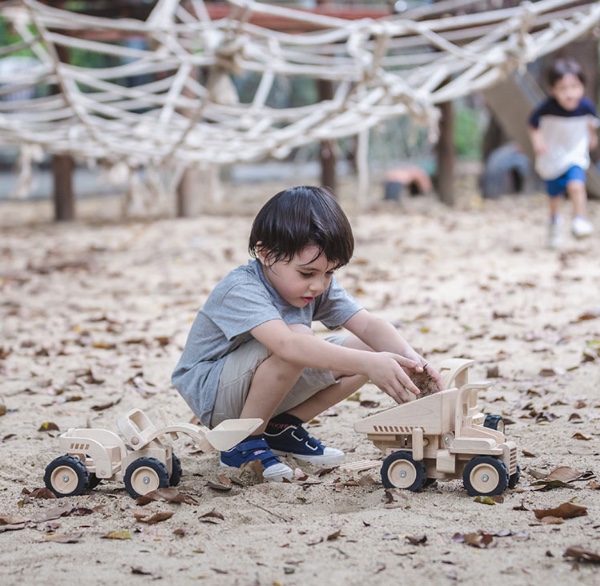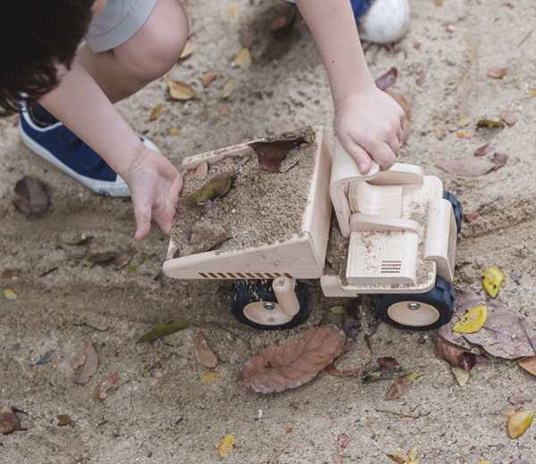 Με αυτό το φορτηγό τα παιδιά μπορούν να αναλάβουν οποιαδήποτε οικοδομική εργασία. Το φορτίο μπορεί να ανατραπεί με μια λαβή που υπάρχει δίπλα από τη θέση του οδηγού. Τα μεγάλα τρακτερωτά του λάστιχα το κάνουν να μοιάζει με ένα αληθινό ανατρεπόμενο φορτηγό.