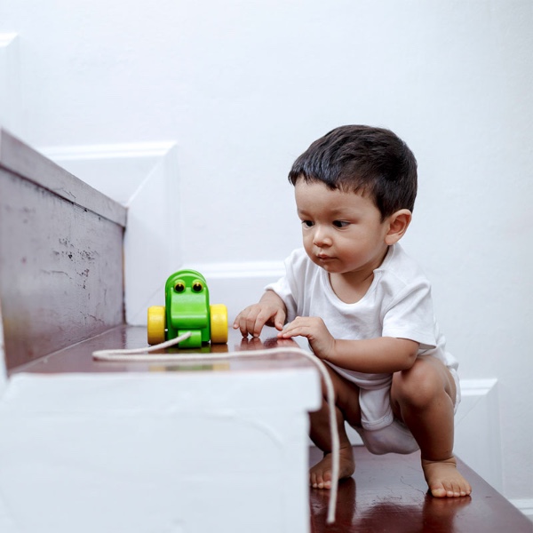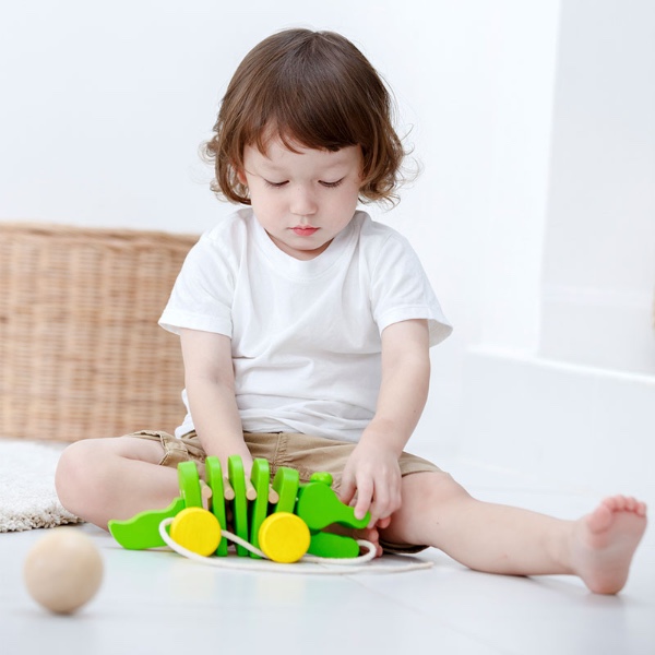 Ένα διασκεδαστικό παιχνίδι για μικρά παιδιά. Τραβώντας το σχοινί, ο κροκόδειλος κινείται και δημιουργείται ένας ήχος κλικ-κλακ!