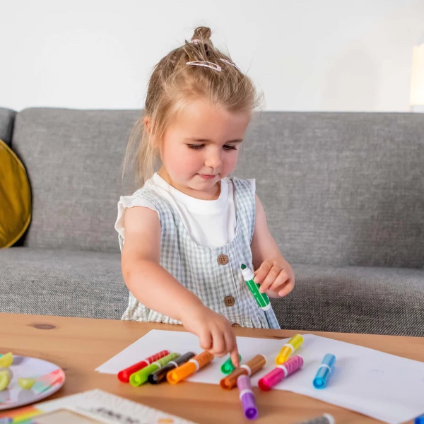 Δώδεκα πολύχρωμοι μαρκαδόροι με ζωηρά χρώματα σχεδιασμένοι για τους μικρούς μας καλλιτέχνες!Τα παιδιά θα λατρέψουν αυτούς τους εύχρηστους μαρκαδόρους με τις φαρδιές μύτες ιδανικούς για μικρά χεράκια. Μη τοξικοί και υδατοδιαλυτοί , οι μαρκαδόροι Junior βοηθούν τα μικρά παιδιά να εξερευνήσουν τη δημιουργικότητά τους, ενώ παράλληλα εξασκούν τις λεπτές κινητικές τους δεξιότητες.