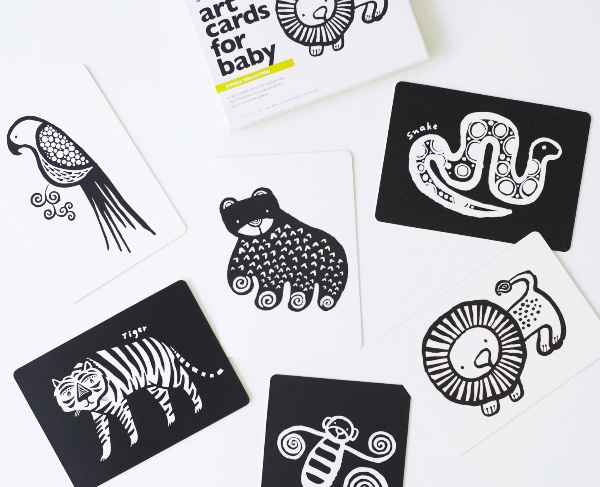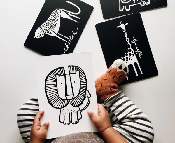 Τα μωρά γοητεύονται με τα ασπρόμαυρα σχέδια. Από την αρχή, οι κάρτες μας αρχίζουν να βοηθούν στη γνωστική και οπτική αντίληψη του μωρού επειδή, με την ανάπτυξη της όρασης, μπορούν να δουν τις εικόνες υψηλής αντίθεσης. Τα μωρά λατρεύουν τις κάρτες τέχνης μας — από την πρώτη μέρα μπορούν να τραβήξουν την προσοχή ενός νεογέννητου. Αυτές οι κάρτες μεγαλώνουν μαζί με το παιδί σας καθώς τα σχήματα ενώνονται για να σχηματίσουν μοτίβα, ολόκληρες εικόνες, να εμπνεύσουν δραστηριότητες για τον χρόνο της κοιλιάς.
